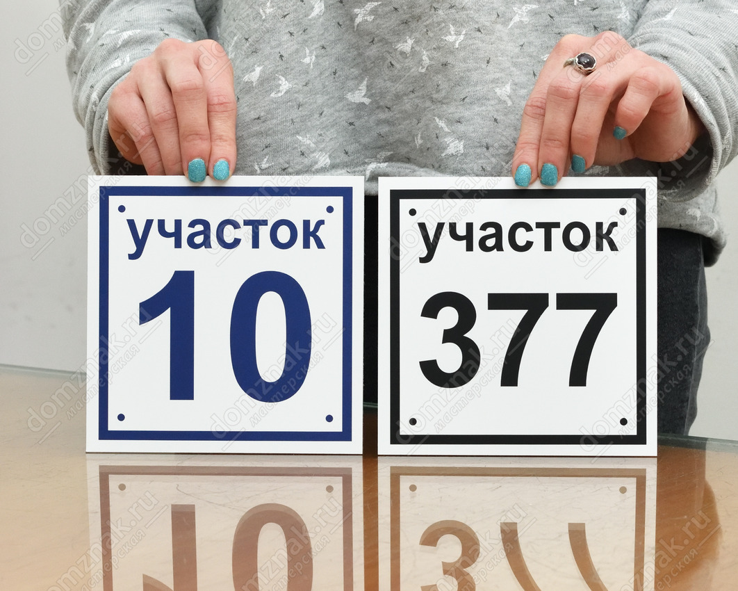 - Пластик ПВХ — лёгкий всепогодный материал. Подходит для табличек небольшого размера. Толщина табличек 4-5 миллиметра. Изображение наносится по технологии сольвентной печати. Срок службы 3-4 года.