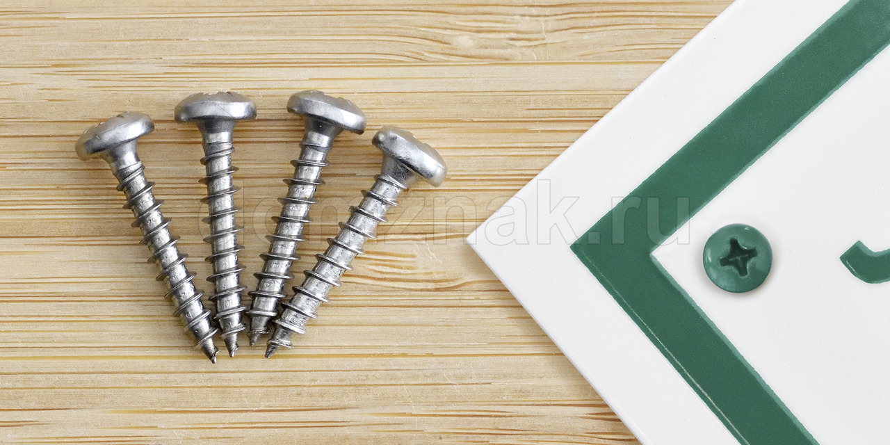 Опционально, шляпки винтов могут быть окрашены в подходящий цвет по RAL, который будет соответствовать цвету эмалированной таблички.