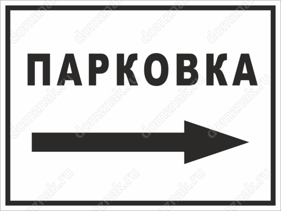 Указатель выполнен в стиле минимализма – ничего лишнего, только надпись «Парковка» и стрелка, показывающая направление в сторону стоянки. Удобный, универсальный и практичный вариант знака – для любой парковки.