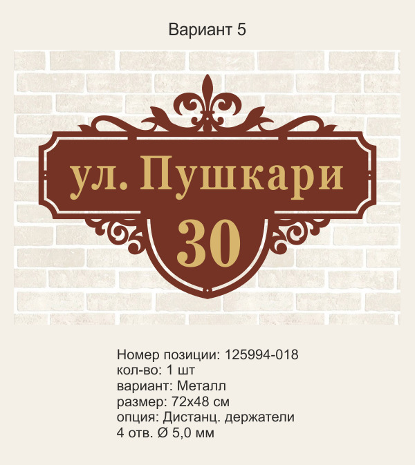Хочу выразить благодарность компании за качественный продукт! Ни одного замечания, начиная от быстрых ответов на вопросы и заканчивая получением продукта. Адресная табличка сделана на совесть, ни одного изъяна. Очень боялась, что из-за вензелей будет смотреться пошловато, но нет! С удовольствием буду рекомендовать вас всем своим друзьям! Удачи и процветания вашей компании!