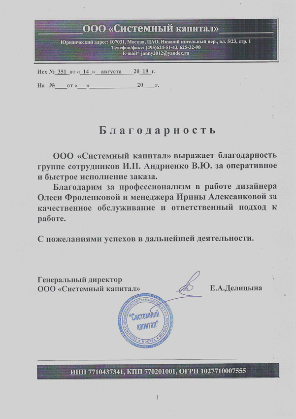 Огромное спасибо за безупречно выполненный заказ №67785. Получатель заказа остался доволен. Приятно с Вами сотрудничать, будем рекомендовать.