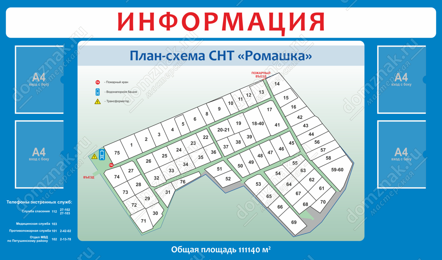 Табличка изготавливается на основе из пластика ПВХ (толщина 4 мм), оцинкованного металла (толщина 0,8 мм) или алюминиевого композита (толщина 3 мм). Подходит для установки на плоских поверхностях, таких как стена дома или забор.
