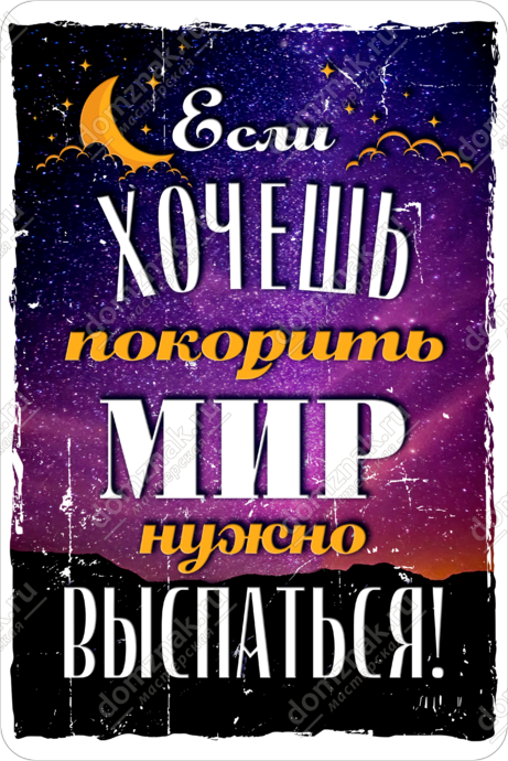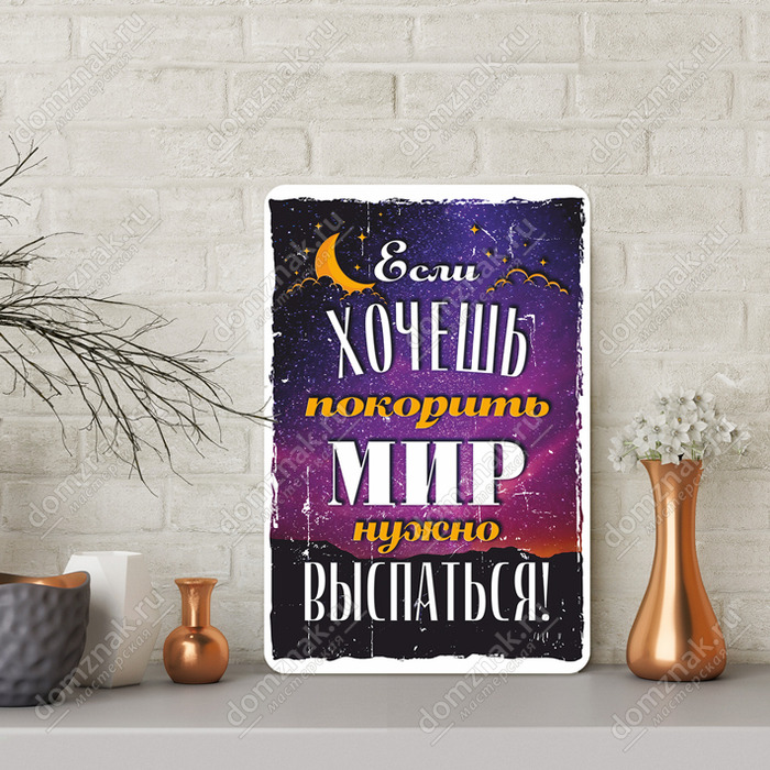 Табличка «Если хочешь покорить мир нужно выспаться!»