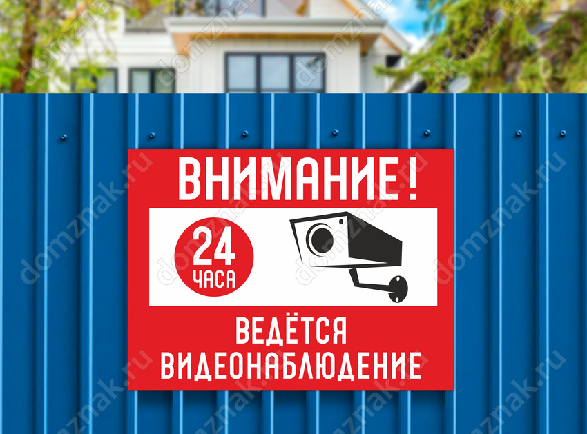 Табличка «Внимание! На территории ведётся видеонаблюдение 24 часа»