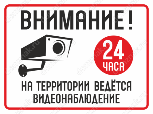 Табличка «Внимание! Ведётся видеонаблюдение 24 часа» изготавливается на основе из пластика ПВХ или оцинкованного металла.
