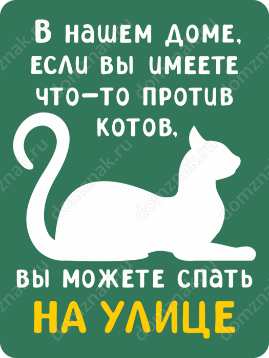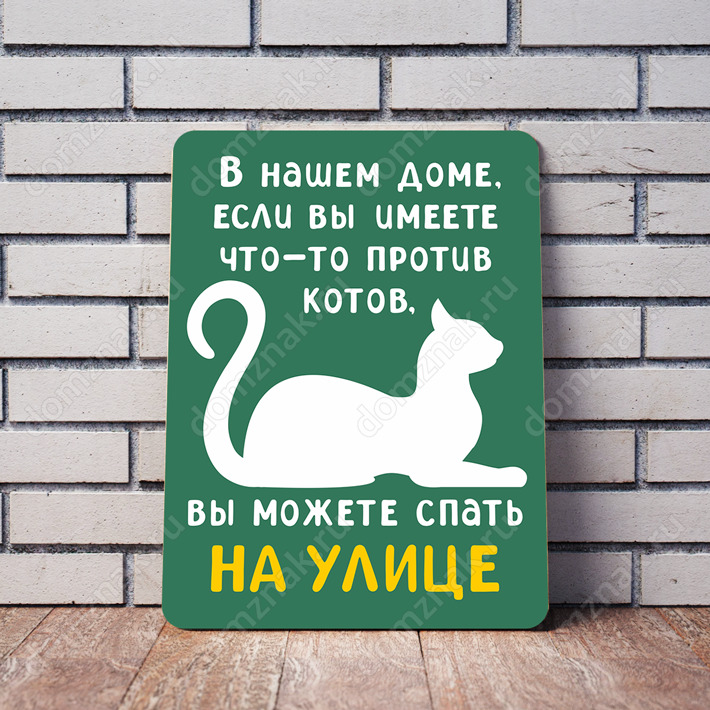 Табличка «В нашем доме, если вы имеет что-то против котов, вы можете спать на улице»