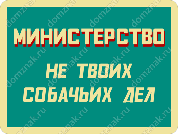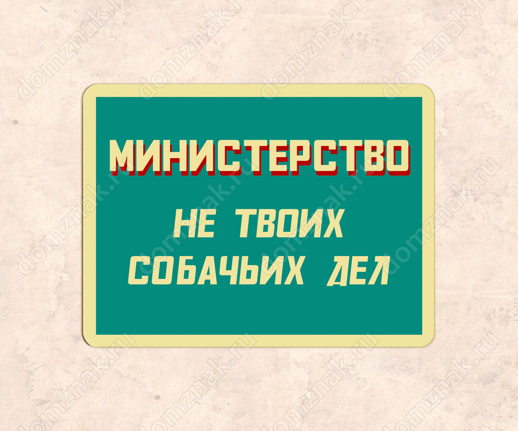 Табличка «Министерство не твоих собачьих дел» изготовлена из пластика ПВХ, толщиной 4 мм. Изображение наносится по технологии УФ-печати. Табличка предназначена для использования как в помещении, так и на улице.
