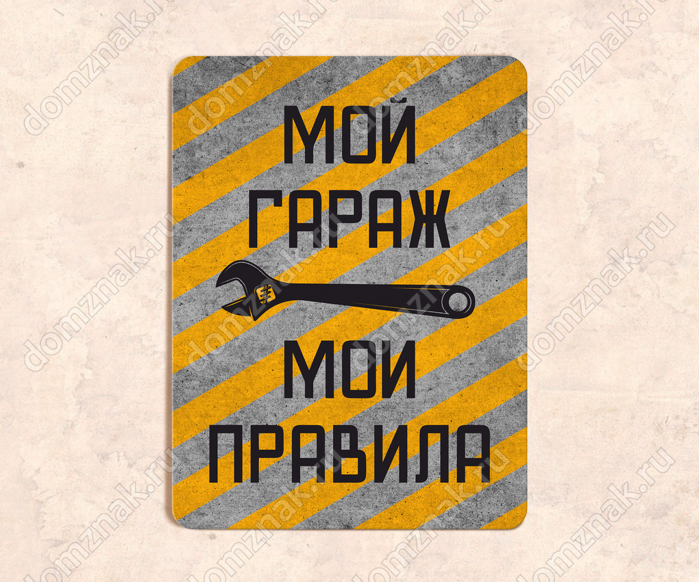 Табличка «Мой гараж, мои правила» изготовлена из пластика ПВХ, толщиной 4 мм. Изображение наносится по технологии УФ-печати. Табличка предназначена для использования как в помещении, так и на улице.