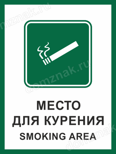 Знак Место для курения, smoking area изготавливается на основе из пластика ПВХ или оцинкованного металла.