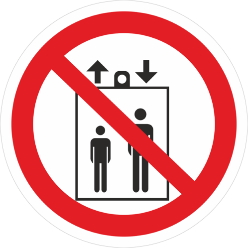 Знак «Запрещается пользоваться лифтом для подъема (спуска) людей» (код P34) размещается на дверях грузовых лифтов и других подъемных механизмах. Знак входит в состав группового знака безопасности «При пожаре лифтом не пользоваться, выходить по лестнице».