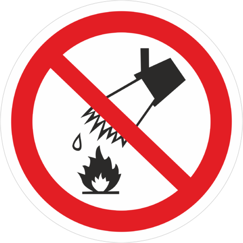 Знак «Запрещается тушить водой» изготавливается в нескольких вариантах: